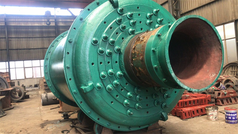 溢流型球磨機筒體用厚度15-36mm的鋼板焊接而成,在筒體的兩端焊有鑄鋼制造的法蘭盤,用螺栓將端蓋2和3與法蘭盤連接在一起,二者須精密加工和配合,因為承載磨礦機質(zhì)量的中空軸頸焊在端蓋上。在筒體上開有1-2個人孔,供檢修和更換襯板用。筒體和端蓋內(nèi)部敷設(shè)有襯板5。端蓋上的中空軸頸支承在主軸承4上。主軸承常用的是滑動軸承,其直徑很大,但長度很短。軸瓦用巴氏合金澆鑄,與一般滑動軸承不同之處在于僅僅下半部有軸瓦。整個軸承除軸瓦用巴氏金澆鑄外,其余用鑄鐵制成。由于球磨機的跨度和載荷很大,將發(fā)生一定程度的撓曲,而且制造和裝配的誤差也難以保證準(zhǔn)確的同心度,因此主軸承制成自動調(diào)心滑動軸承,為防止軸瓦轉(zhuǎn)位過大而從軸承座中滑出,在軸承座與軸瓦的球面***放一圓柱銷釘。